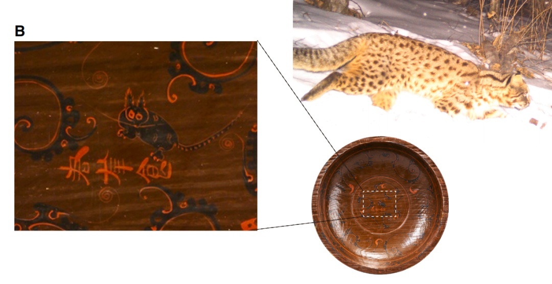马王堆汉墓出土的漆盘上所绘的那只身带圆斑的“猫”的形象,如今看来,也更可能是一只被艺术化表现的豹猫。